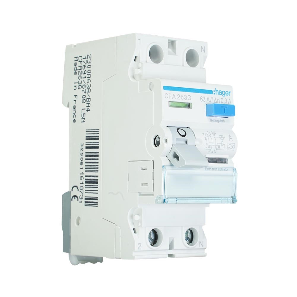 Hager aardlekschakelaar 2-polig 63A 300Ma type A (CFA263G)