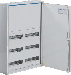 Hager Veldverdelers Opbouw groepenkast, leeg, wit, (bxhxd) 550x800x161mm, breedte in module-eenheden 24, beschermingsgraad (IP) IP44, 5 rijen, behuizing staal, opbouw, soort afdekking deksel, uitvoering deksel met uitsparing, aanbouwmogelijkheid, type sluiting overig, inwendige diepte 156mm,