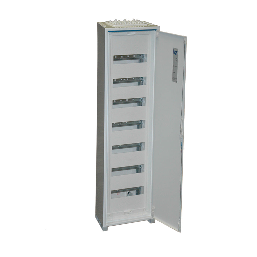 Hager Veldverdelers Opbouw groepenkast, leeg, wit, (bxhxd) 300x1100x161mm, breedte in module-eenheden 12, beschermingsgraad (IP) IP44, 7 rijen, behuizing staal, opbouw, soort afdekking deksel, uitvoering deksel met uitsparing, aanbouwmogelijkheid, type sluiting overig, inbouwdiepte 161mm,